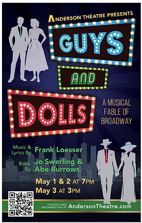 Considered by many to be the perfect musical comedy, Guys and Dolls ran for 1,200 performances when it opened on Broadway in 1950. Set in a mythical version of Prohibition-era Manhattan, the story follows gambler Nathan Detroit as he tries to find the cash to set up the biggest game in town while the authorities breathe down his neck. Throw in Adelaide, Nathan’s fiancee for fourteen years, high roller Sky Masterson, and the straight-laced missionary, Sarah Brown, and you have a night of musical high jinks and hilarity that will delight young and old.